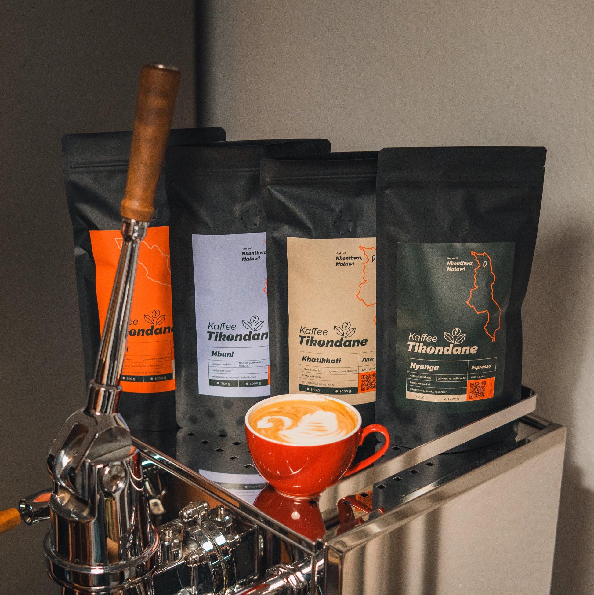 Los Wochos bei Kaffee Tikondane. Malawi ft. Mexico. Im Ergebnis unsere neue Viererbox, die neben unseren drei Kaffees aus Malawi auch den Soli auf Mexico enthält. Damit bekommst Du je 250g schokoladigem Nyonga für Deinen Espresso, hellen Khatikhati für einen floralen Filter, und süßen Mbuni für einen wilderen Filter oder Espresso. On top gibt es noch den schokoladigen Soli als Alternative zum Nyonga - viel Spaß beim blinden Probieren.